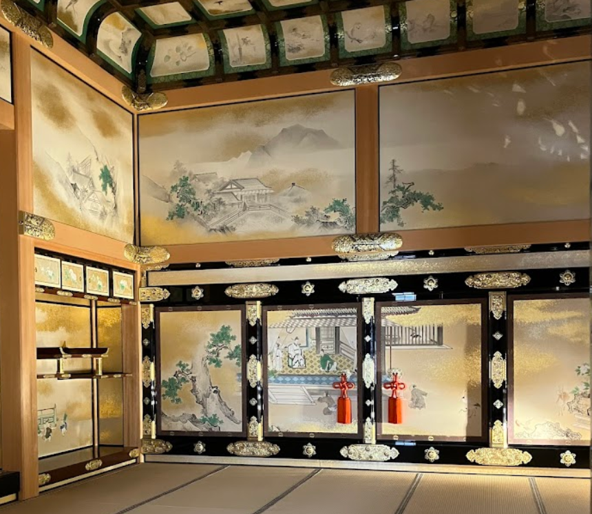 본마루 고텐은 에도 시대의 건축 양식을 그대로 재현한 건물로, 2018년에 복원되었습니다. 이곳에서는 화려한 내부 장식과 일본 전통 건축의 아름다움을 감상할 수 있습니다.
